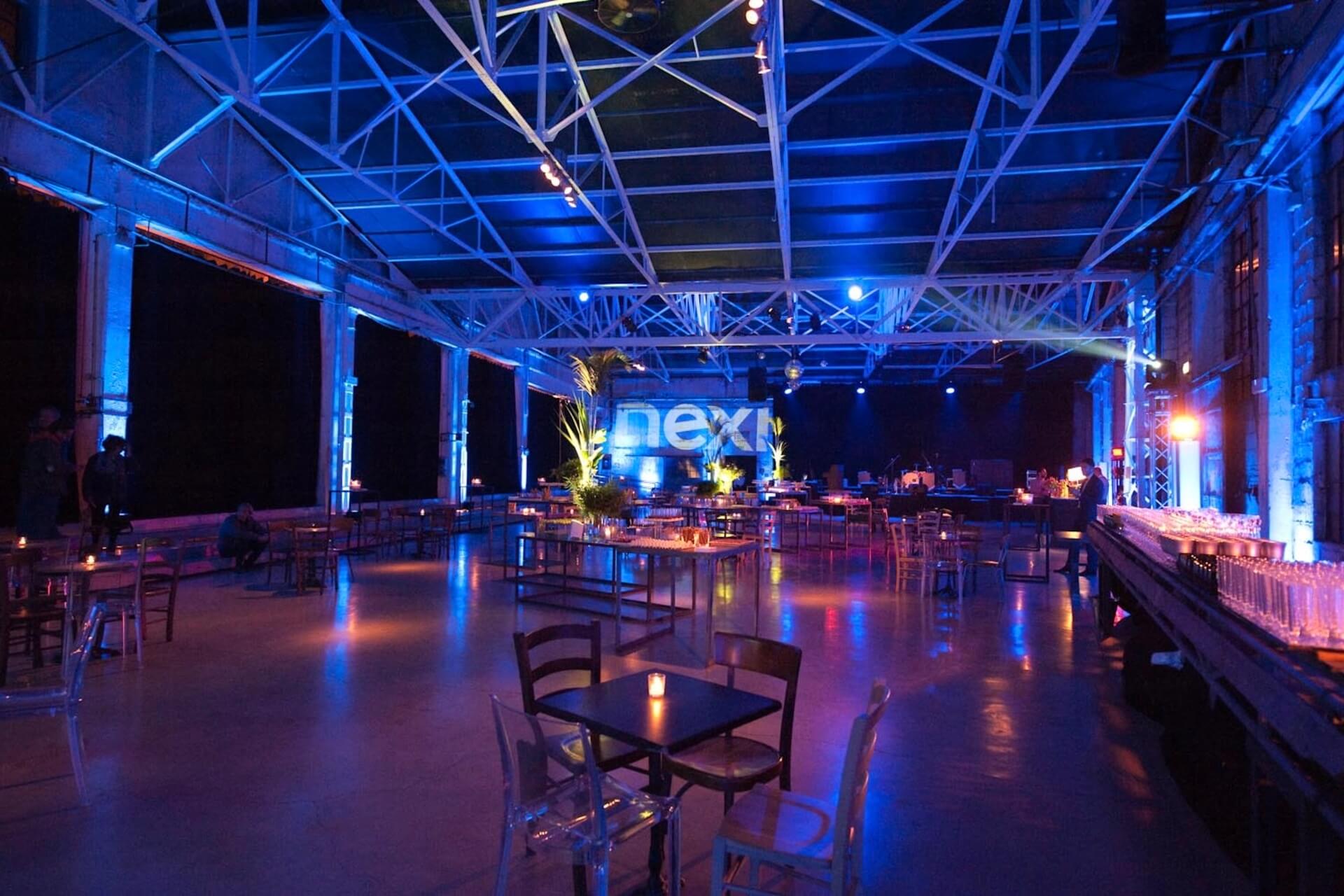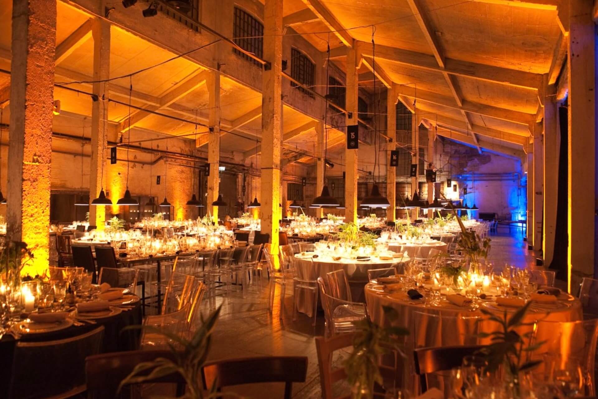 An event with a contemporary spirit, where the technical precision of our corporate gala dinner setups interacted seamlessly with the raw identity of the venue, transforming it into a spectacular scenic environment designed for the occasion.