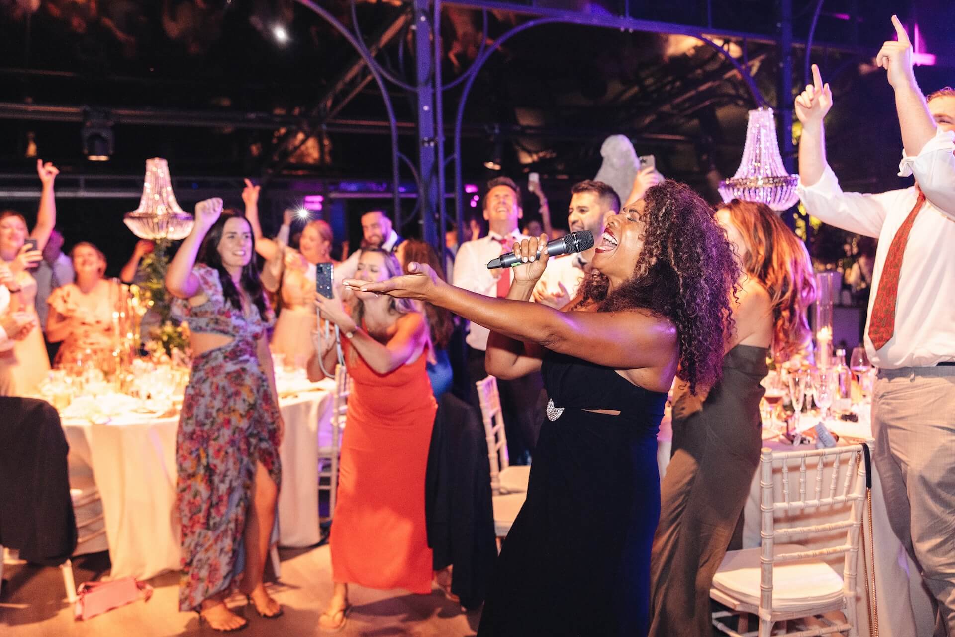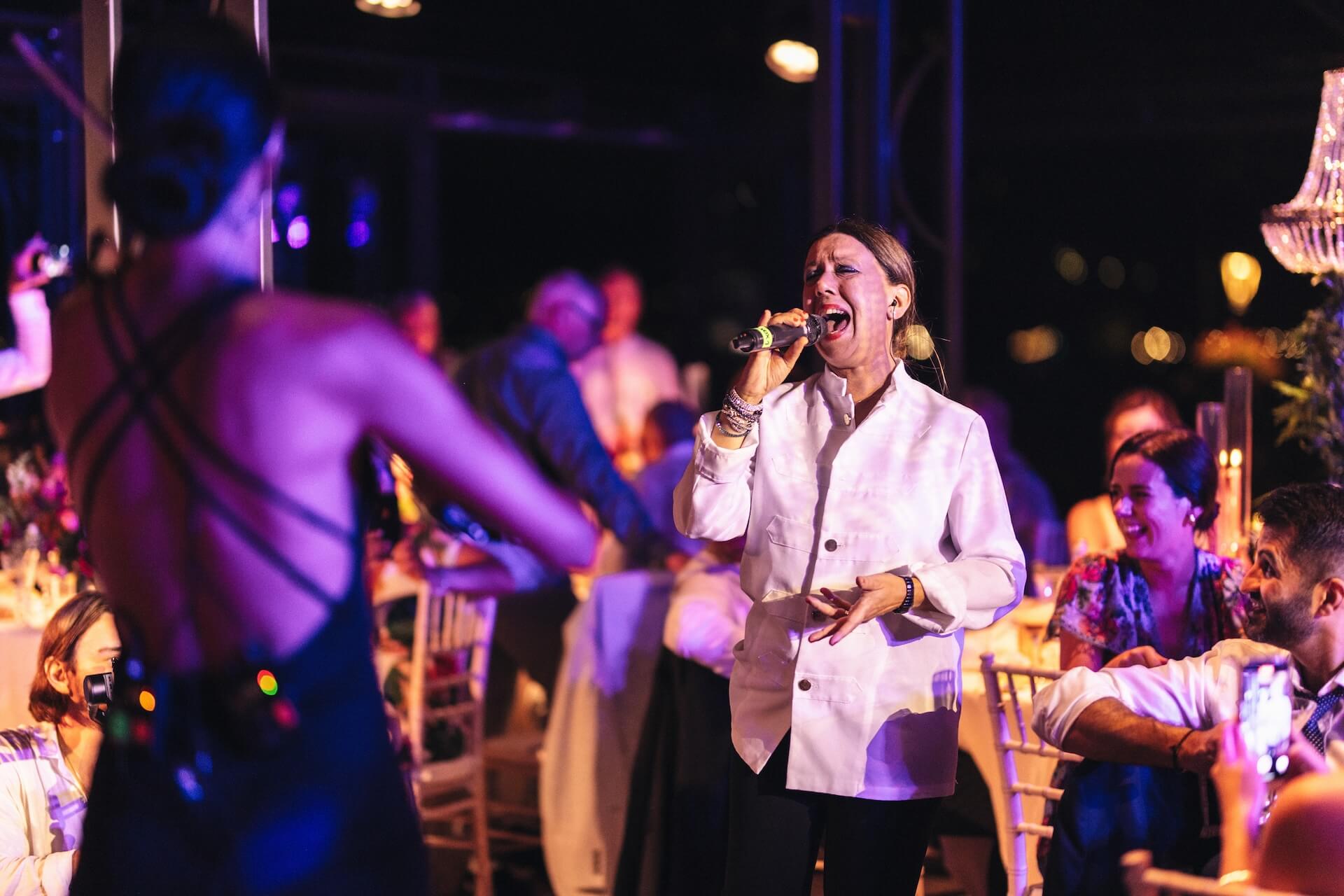 As she reached the second verse, a violinist joined her, heightening the emotion. The result? Guests on their feet, spontaneous singing, and dancing among the tables – a true flash mob, both surprising and thrilling.