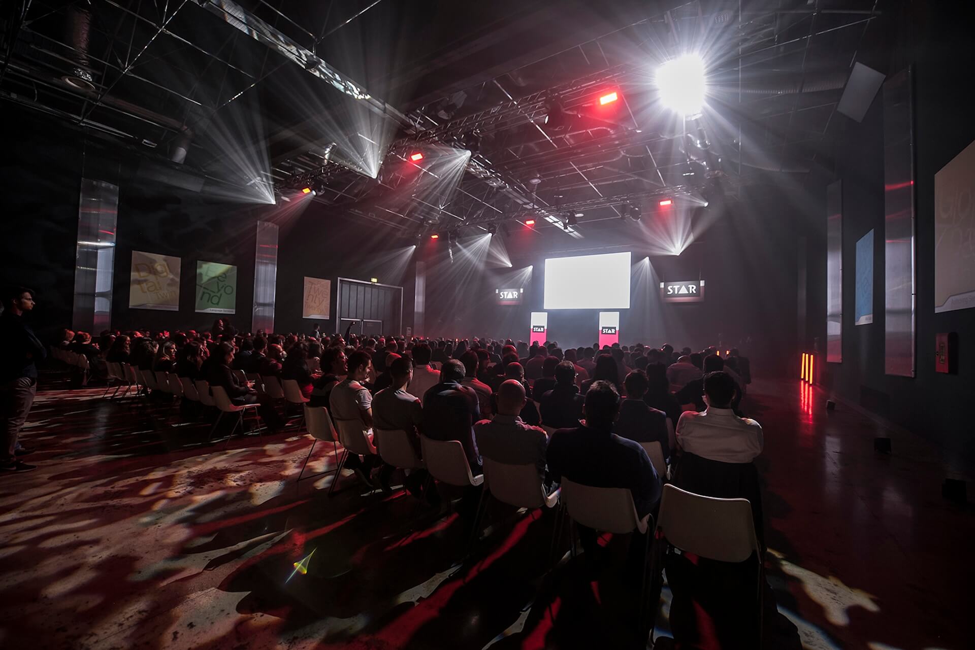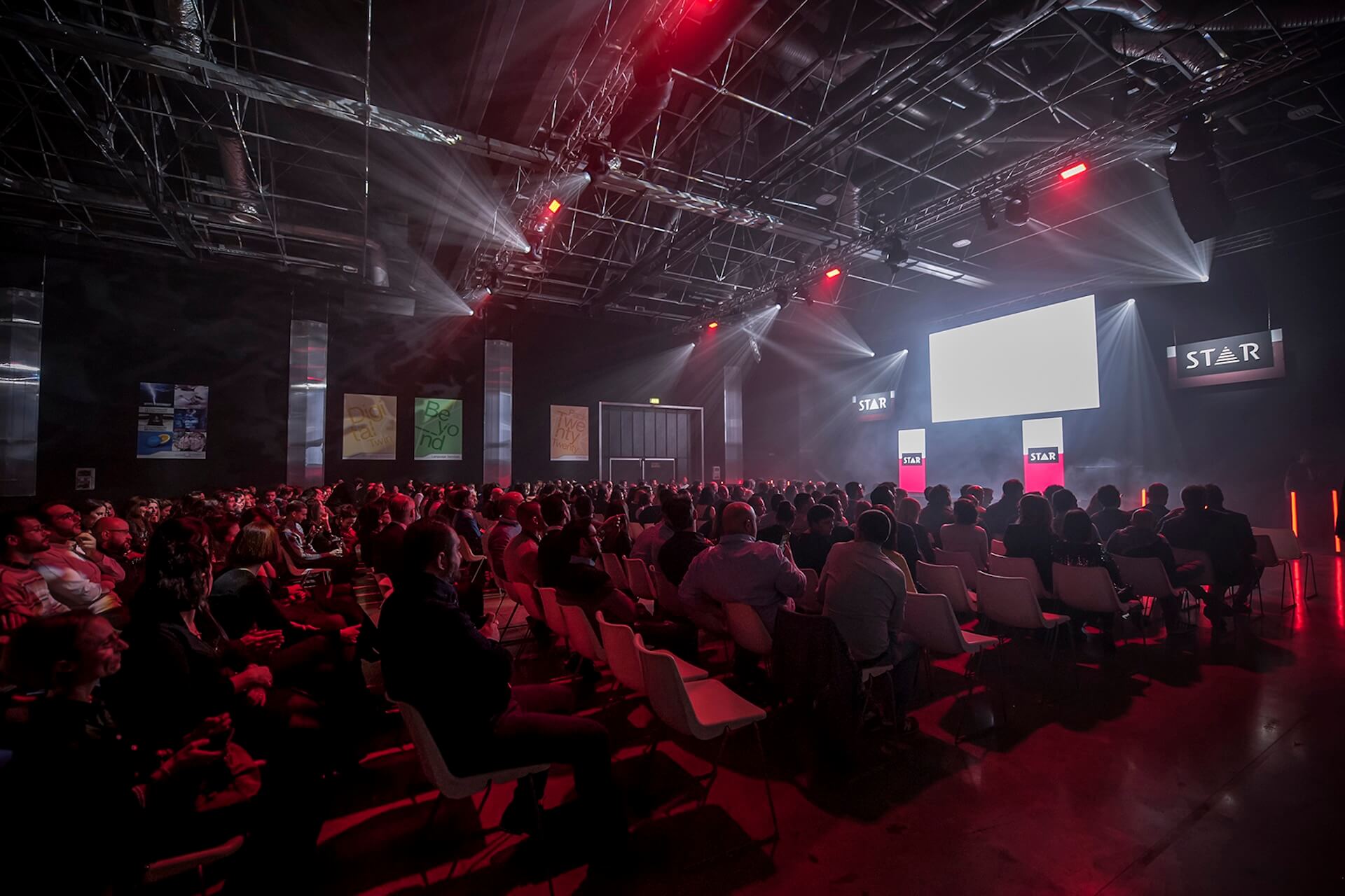 When STAR GROUP chose the East End Studios in Milan as the setting for its annual convention and gala dinner, the goal was clear: to create a corporate event setup that would transform the venue into an immersive, memorable experience aligned with the company’s identity.